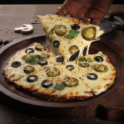 Jalapeno & Olive Dizza is a modern take on pizza, featuring a crispy, maida-free base crafted from nutrient-rich split chickpea, sorghum, and wheat. Generously topped with fiery jalapenos and briny olives, every bite delivers a bold, tangy kick that transforms your classic slice into a nutritious delight.