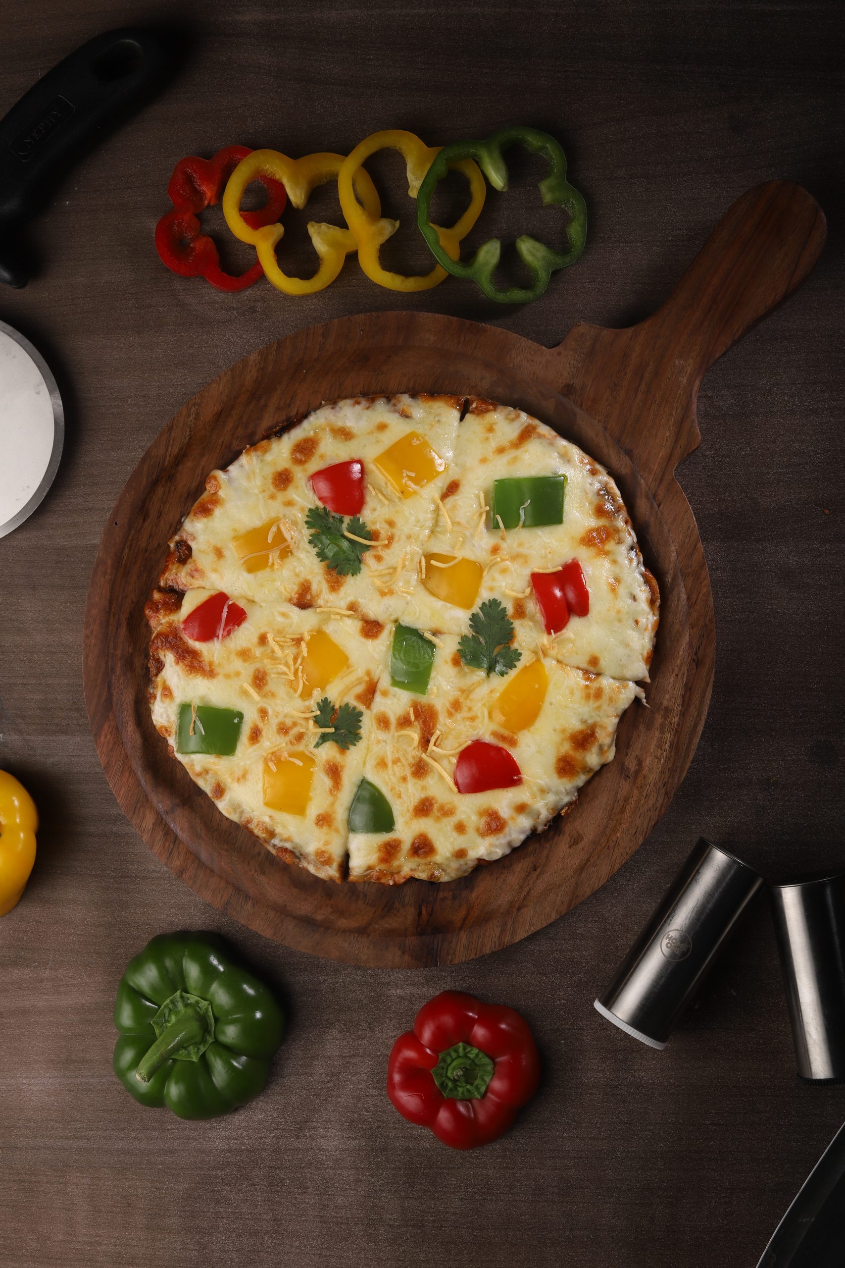 Bell Pepper Dizza is a modern take on pizza, featuring a crispy, maida-free base crafted from nutrient-rich split chickpea, sorghum, and wheat. Generously loaded with vibrant, fresh bell peppers, every bite offers a crunchy texture and a burst of natural sweetness and vitamins, elevating your classic slice to a healthy delight.